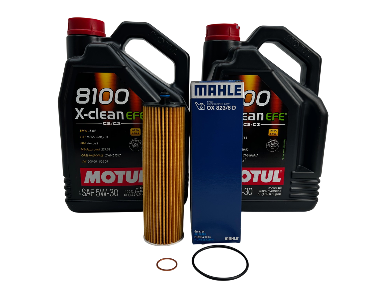 Includes 12 Liters of Motul 5W30 motor oil, Hengst oil filter, and drain plug seal ring.